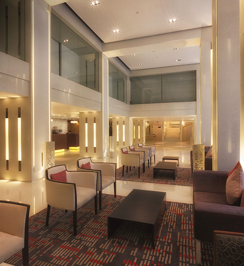 While most other hotels are gated and hidden away from public view, the Ramada hotel sits right on the street, set back only by its driveway. The remodelled lobby has been connected to the street by transforming into a double height space with glazing along the street. The space, now flooded with natural light is animated by the busy street.